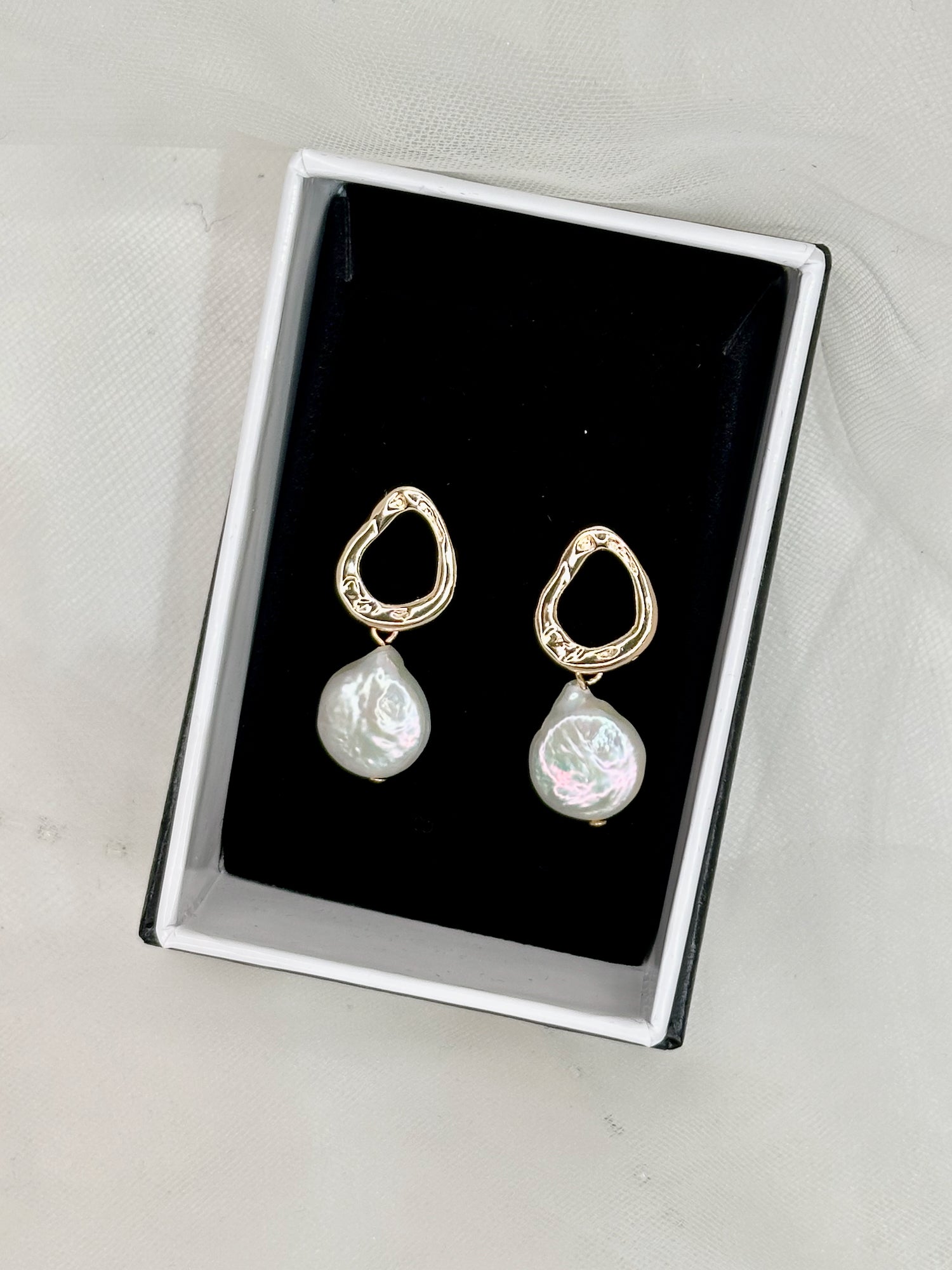 The Ariadne Earrings showcase freshwater look pearls set on elegant gold-plated settings, designed to complement a bride’s radiant look. Presented in a stylish display box, they combine classic beauty with refined craftsmanship, making them a sophisticated choice for your wedding day or a cherished gift.