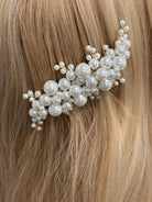 Baja features an elegant arrangement of high-quality faux pearls set on a silver comb base. The pearls vary in size, creating a graduated effect. Presented in a display box, the pearls can be gently reshaped to suit your style.