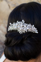 Caterina is a gorgeous curving silver side comb featuring an awe-inspiring display of pearls and crystal-encrusted filigree, putting this piece is in a class of its own. Caterina comes fitted to a hair comb to seamlessly slide into place. So let Caterina lead from the top as you make your way down the aisle on your dream wedding day.
