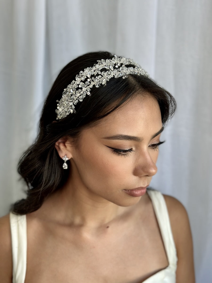 Our Cosima twin band design is a masterpiece of classical crystal charm. Ultra-lightweight and easily adjusted for style preference, Cosima allows you to spread the twin rows of gleaming crystal as wide or as narrow as you like. Simple yet beautiful, the Cosima headband is easy and comfortable to wear and is sure to perfectly compliment your bridal ensemble.