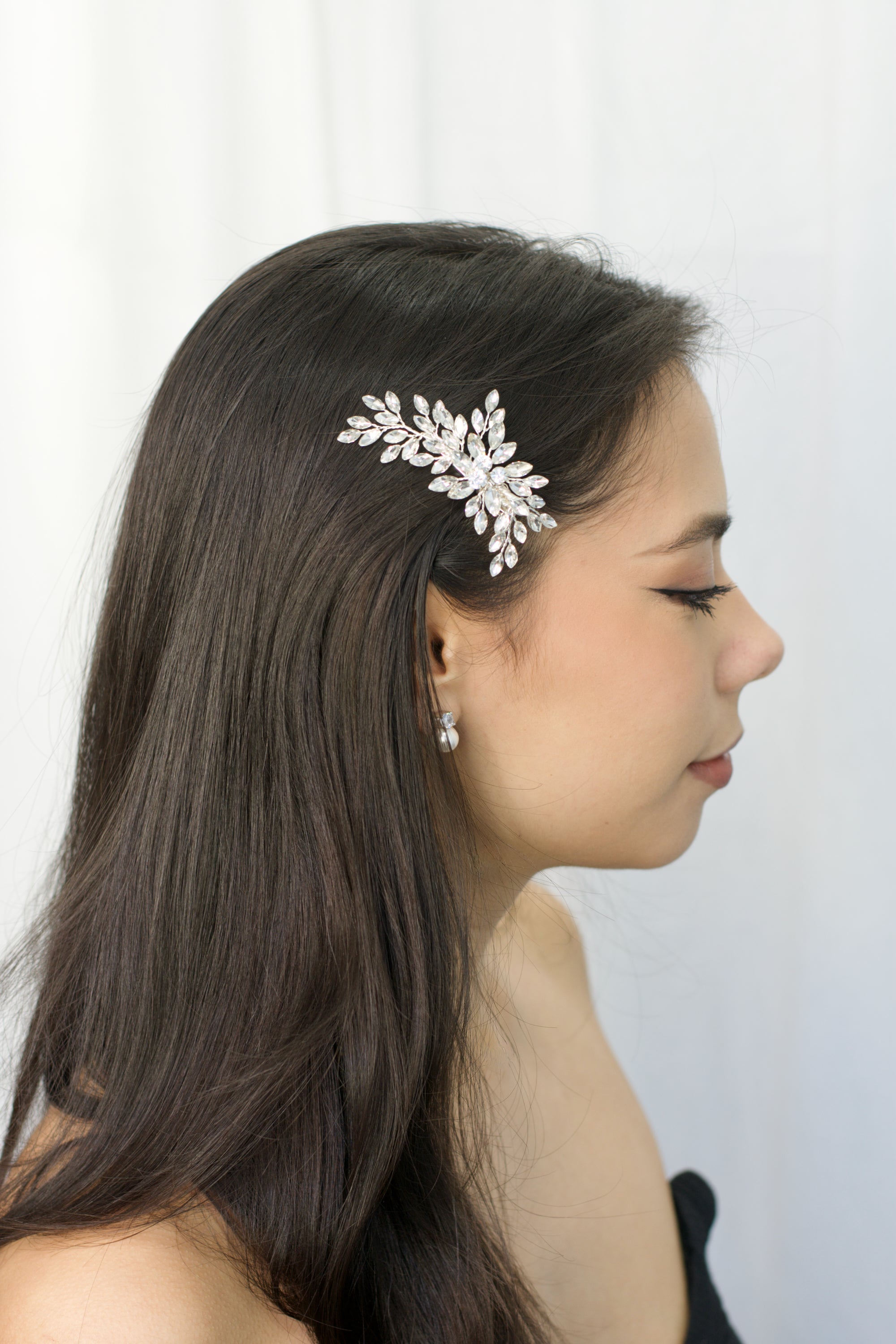 Elevate your look on your wedding day with a simple stunning Bridal Clip to add the finishing touch to your beautiful wedding gown. Elania is so light you will not notice you are wearing her but others will!  Elania's lovely stones will give that essential sparkle to your look. Use Elania to pull back your hair and maybe show some stunning earrings. She is such a versatile piece.