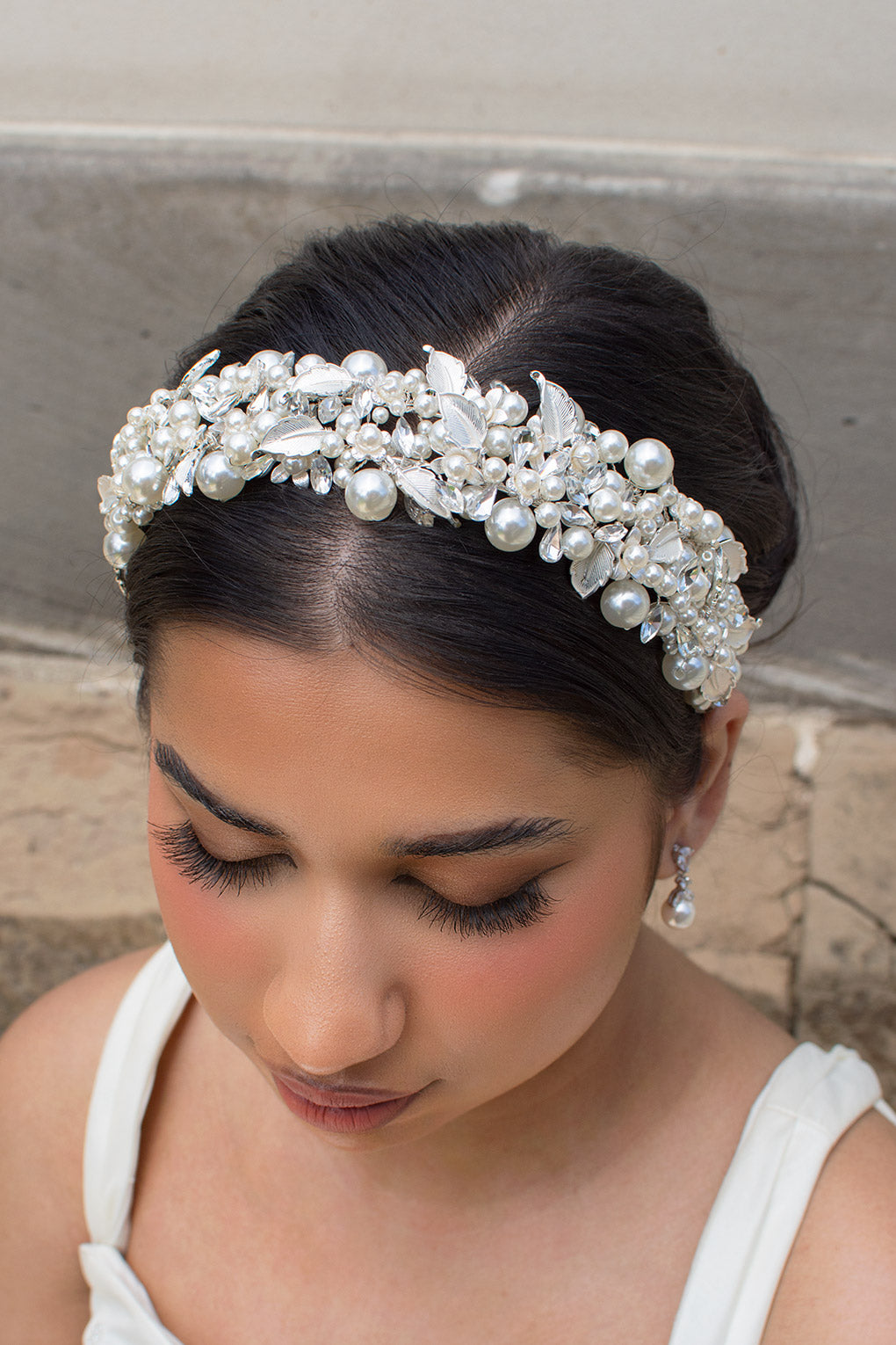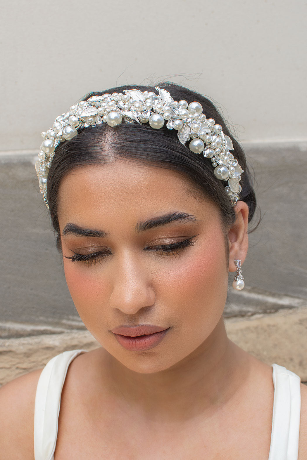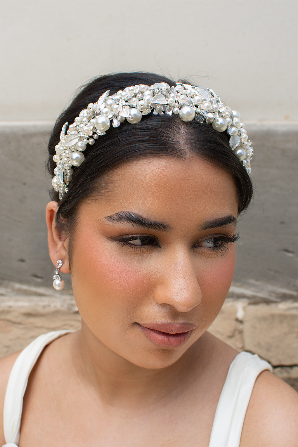 Be the Bride you've always dreamed of being in our Heather Double Pearl Headband. Illuminating with Pearl and Detailed Crystal, our Heather Double Pearl Headband will make you gleam with light and lustre. With various sizes of pearls, florals and shining crystals of the highest quality, the Heather Double Pearl Headband is the most exquisite accessory to your luxurious bridal look. Heather is an elegant and timeless headpiece that can be worn with both flowing and up done hairstyles. Heather's flexible frame and lightweight nature allows you to comfortably wear her without any headaches. Our Heather Double is a dreamy wide headband that will make you feel like magic all day and night long.