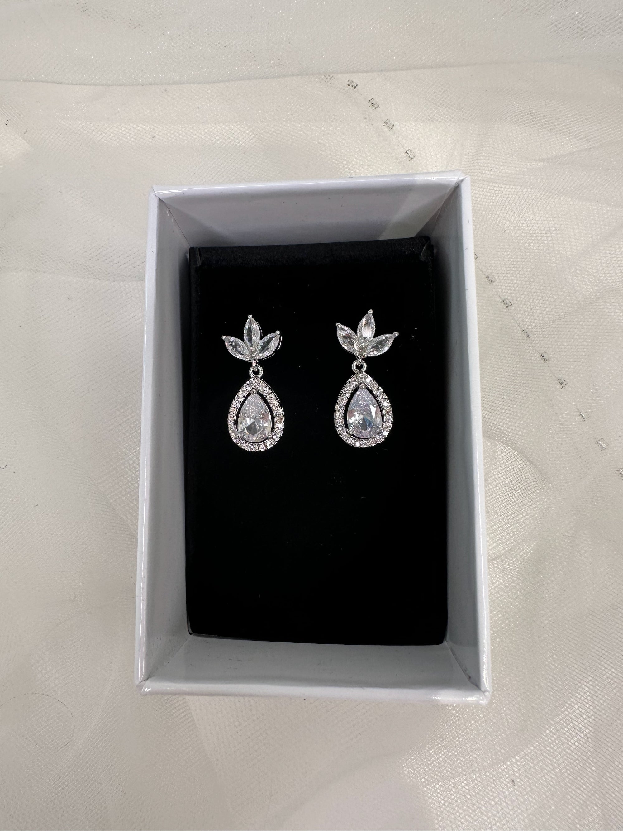 Jan Silver Earrings are perfect for brides and bridesmaids. Made with high-quality zirconia stones, they add a touch of sophistication to any outfit. Shop now!