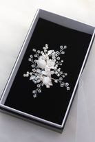 Kiara is a fantastical burst of organically shaped crystal and seed pearls. Centred by a bloom of porcelain florals, Kiara is ethereal in her nature. She is the perfect touch of dreamy elegance suitable for any Bride.