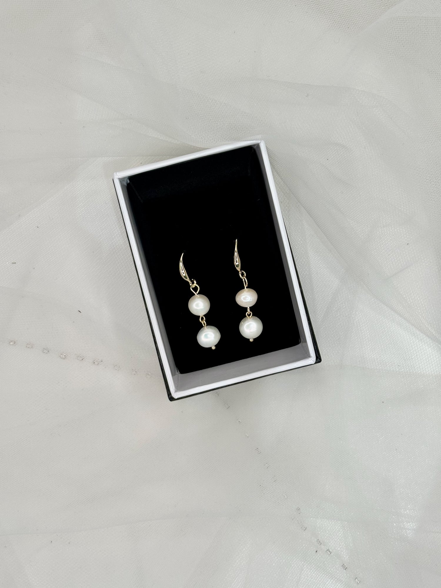 Complete your bridal ensemble with the Rome Earrings, featuring two lustrous real freshwater pearls delicately suspended from elegant gold-plated hook fittings. These earrings offer timeless sophistication and a graceful shimmer, perfectly complementing your special day. Presented in a refined display box, they make an exquisite gift or keepsake.