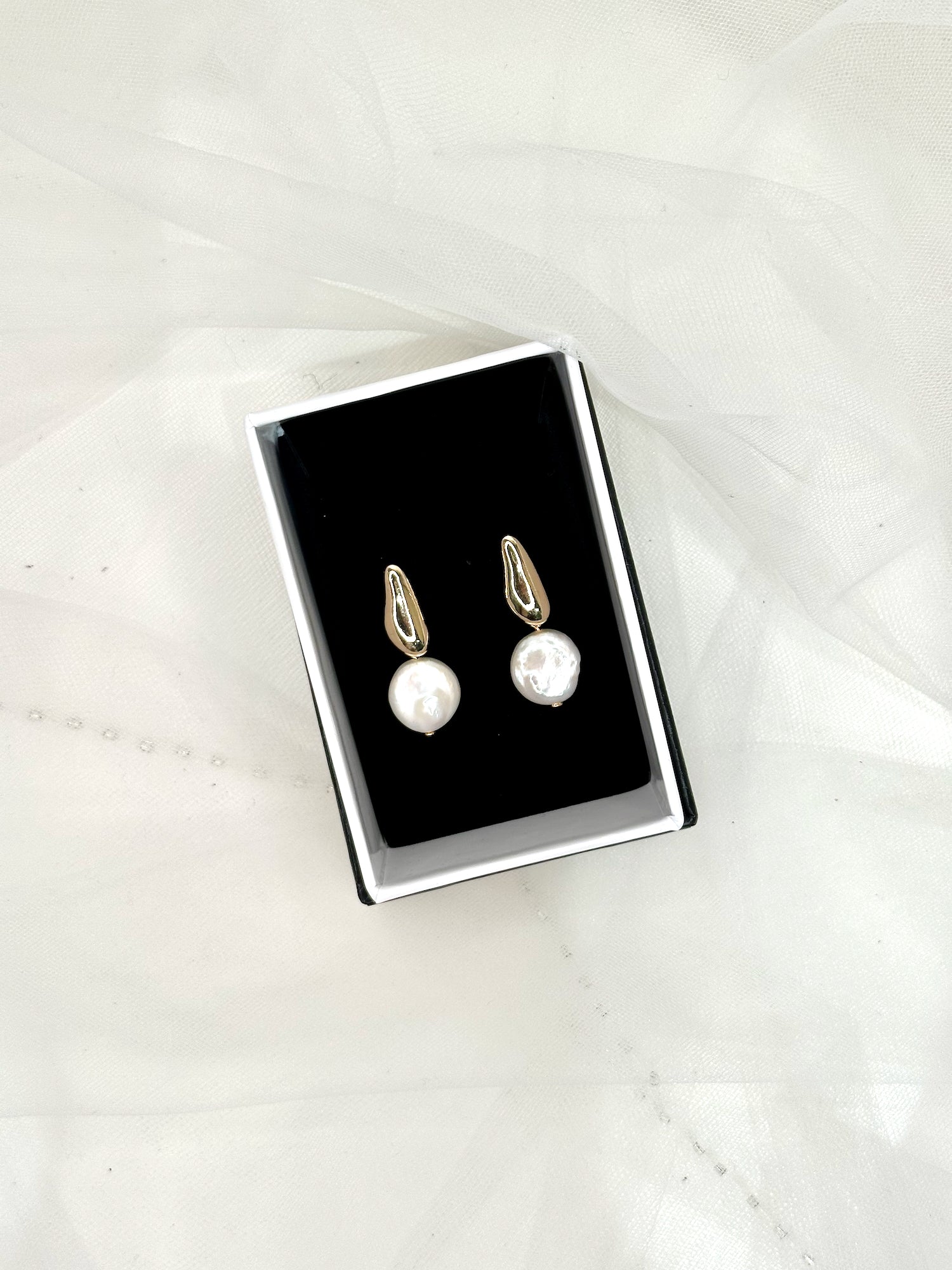 Elevate your bridal ensemble with the Teena Earrings, featuring lustrous freshwater look pearls in a unique baroque design. Gold-plated for a refined finish, these earrings offer timeless elegance and a subtle statement. Presented in a stylish display box, they make a perfect gift or a cherished keepsake for your special day.
