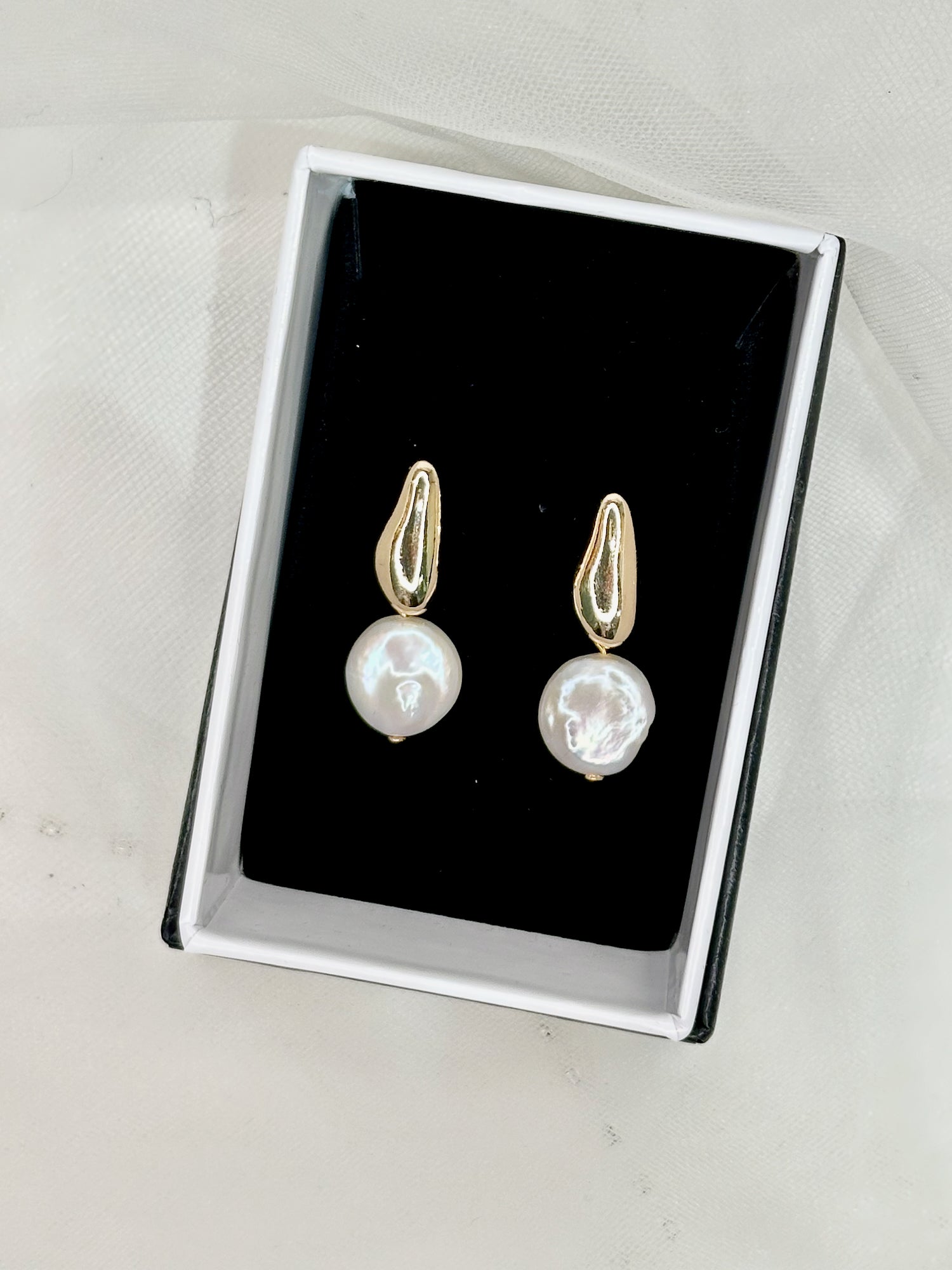 Freshwater Pearl (faux) Bridal Earrings Gold Plated. Baroque look. In a display box