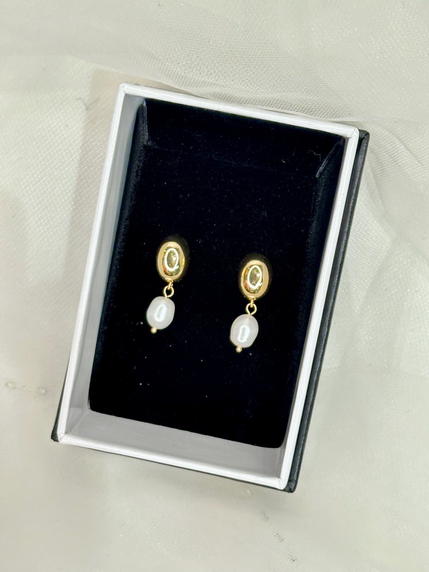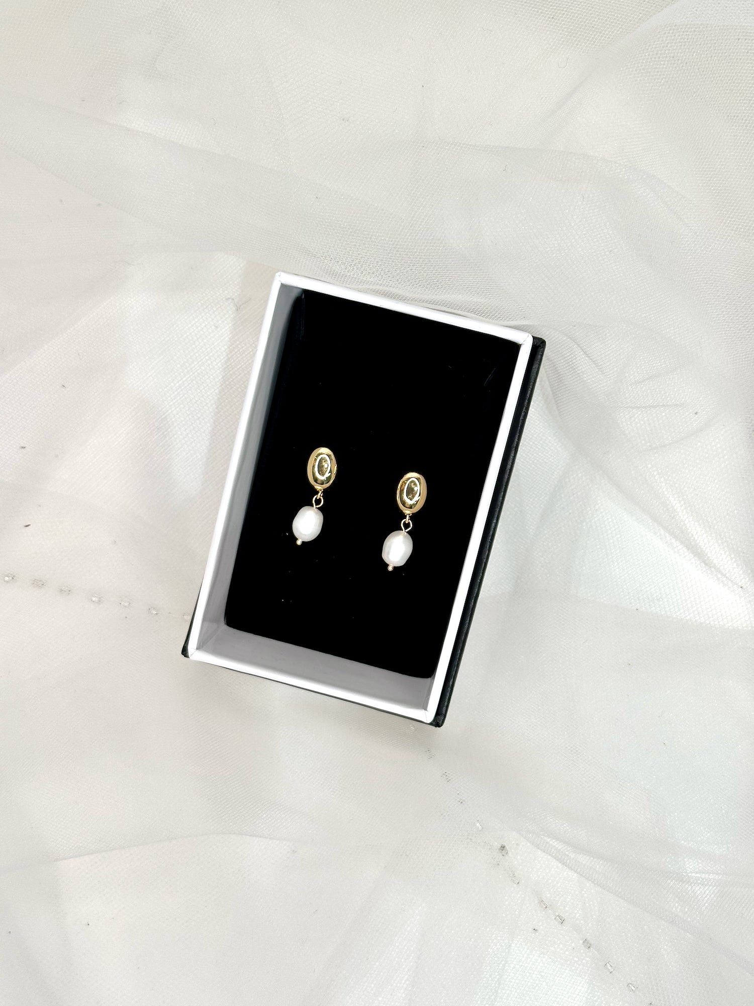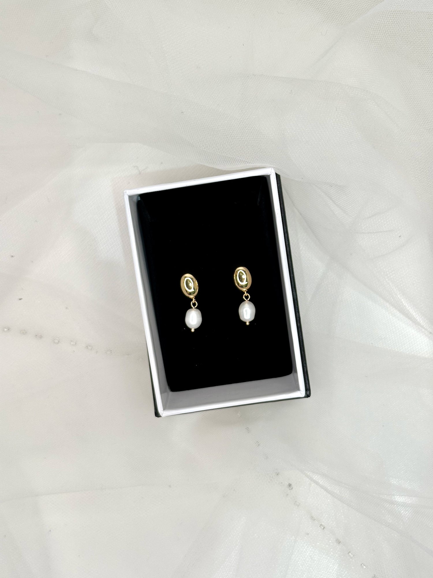 Elevate your bridal ensemble with the Tran Earrings, featuring lustrous real freshwater pearls elegantly set in gold-plated settings. Presented in a refined display box, these earrings offer timeless sophistication and a graceful finish to your special day.
