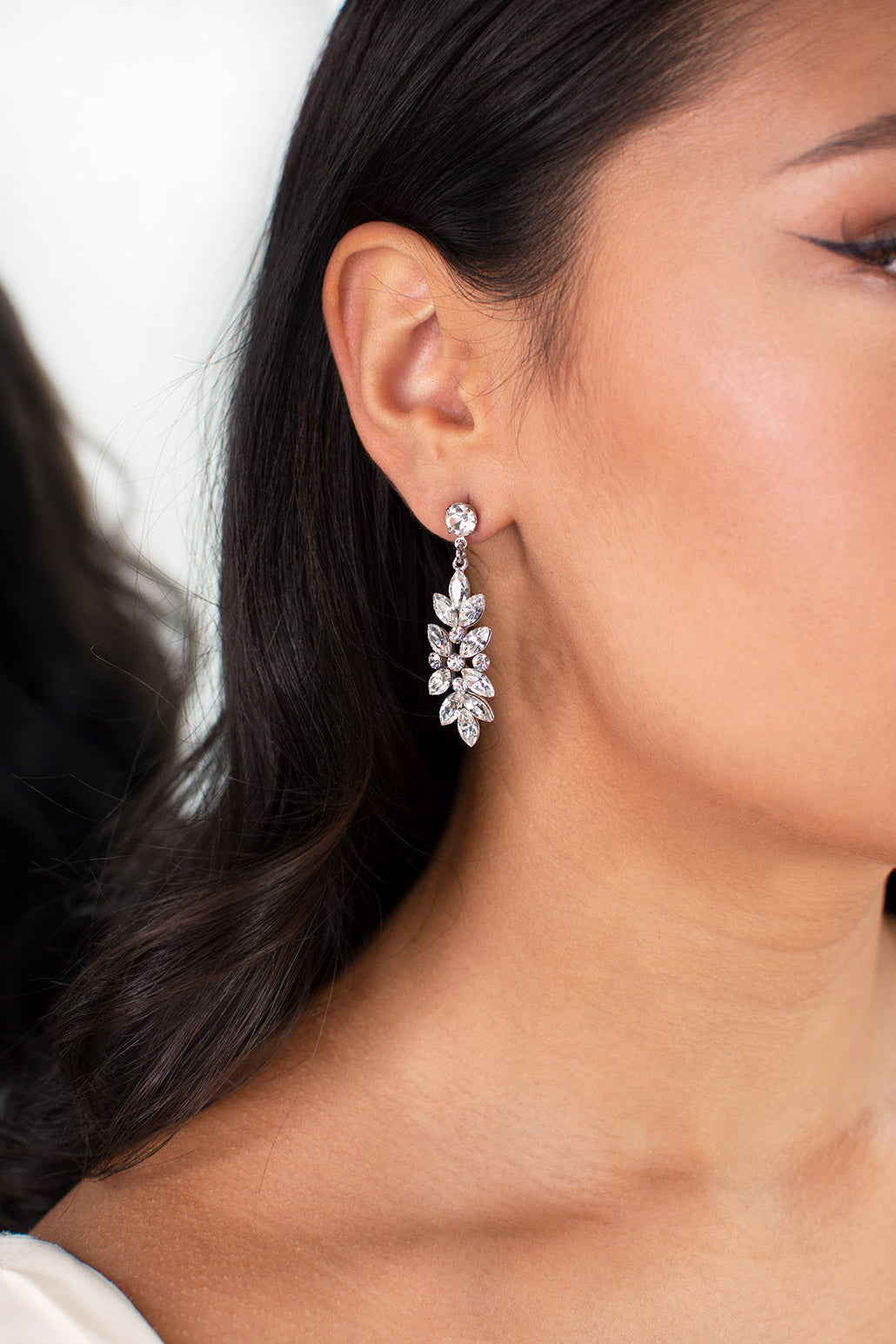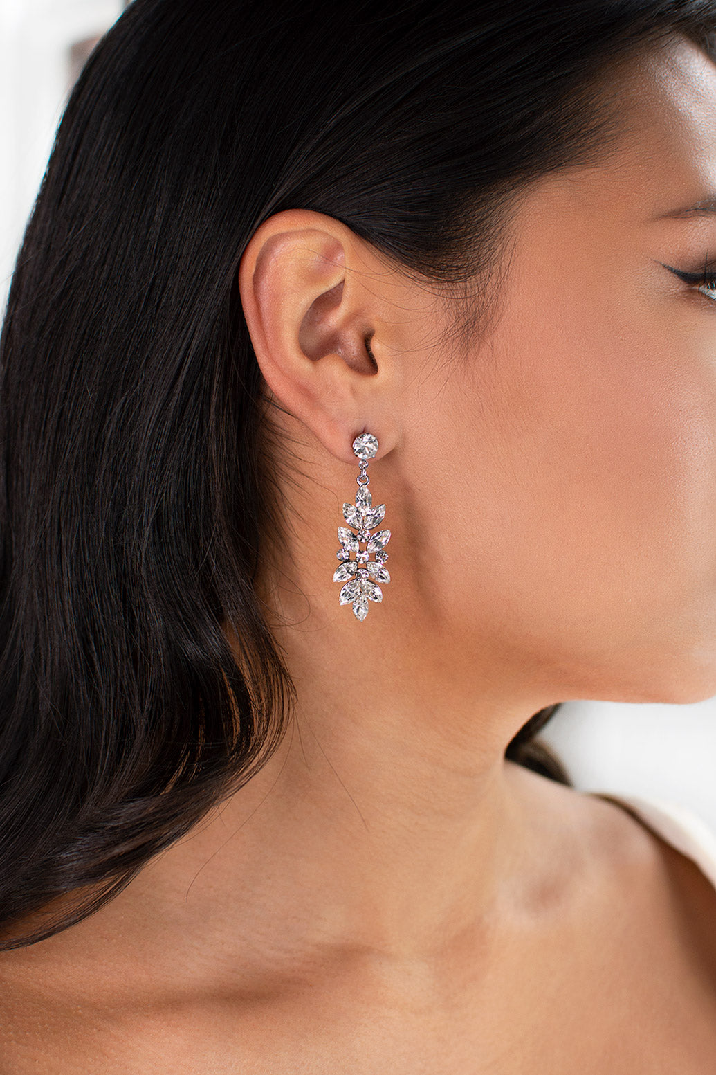 Made with pure Swarovski stones, Vanessa is a drop earring straight out of a fairytale. Set in rhodium silver, Vanessa's sparkling navette shaped stones combine with small circular stones in a gleaming symmetrical design. Handmade from quality European parts and crystals, this bridal earring is the perfect statement earring that will catch the adoring eyes of many on your special day.