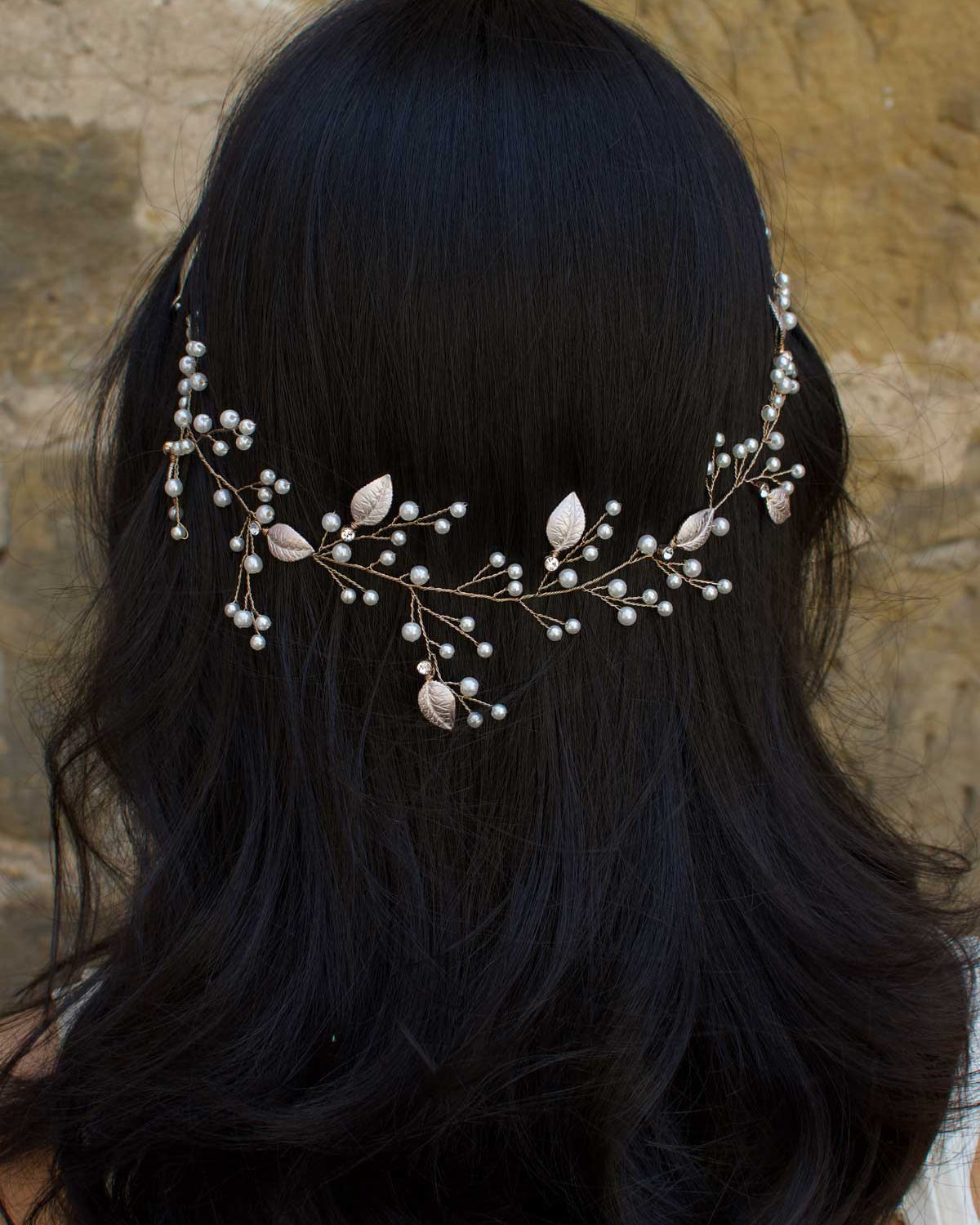 Inspired by natural vines, our magnificent Silver Magnolia Vine is a whimsical wonder, featuring delicate silver leaf detailing and sprays of decorative pearls. Lightweight and easily adjusted for individual style preference and comfort, Magnolia is sure to be a crowd-pleaser as you make your way down the aisle. But, once it’s on, you won’t want to take this one-off.