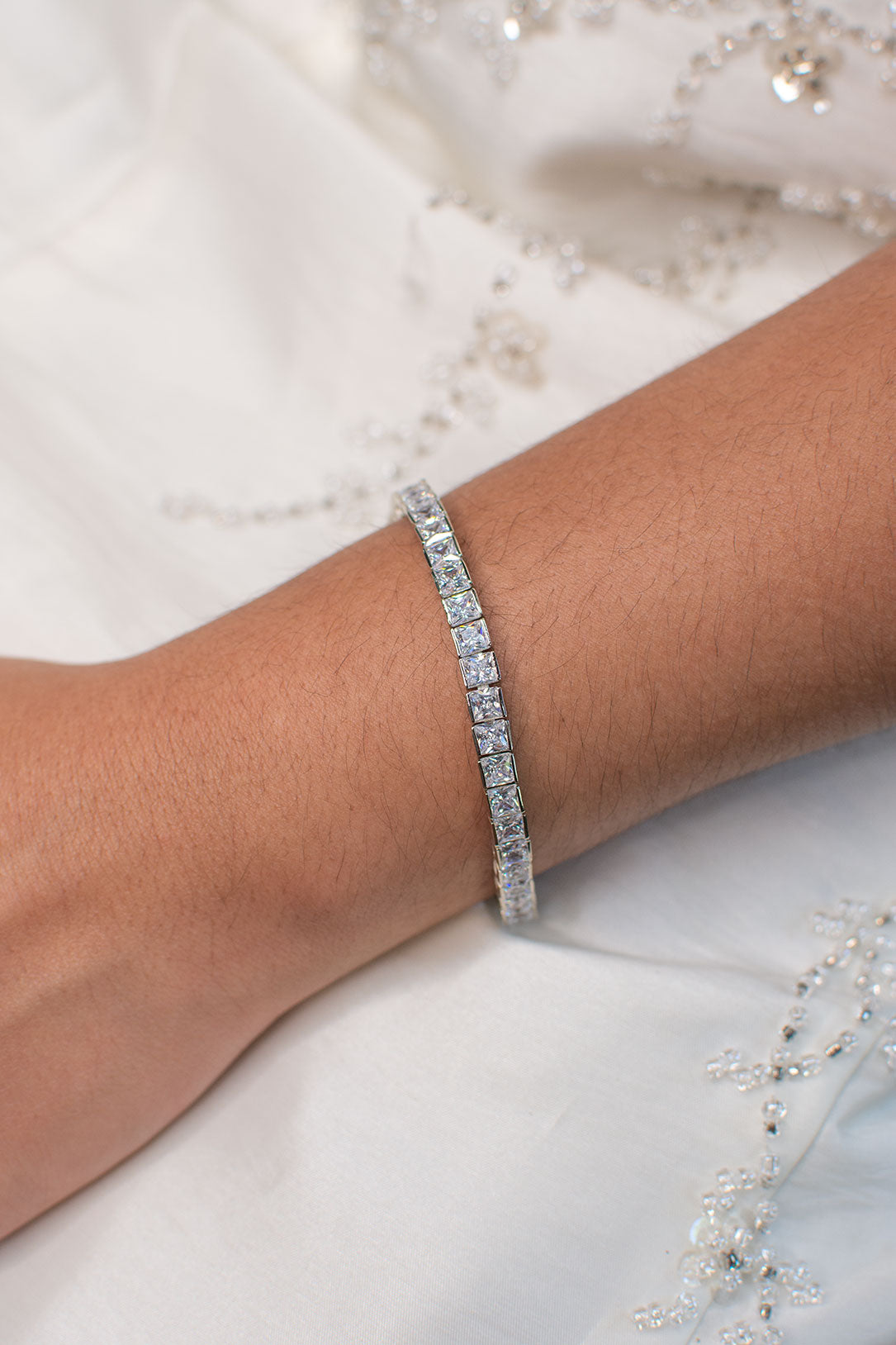 Quattro, the Italian word for square, is completely fitting for this dazzling square stone bracelet. A high quality bracelet with square shape zirconia stones of about 4mm in size. The standard length is 18cm so it fits an average wrist size. A classic and trendy bracelet perfect for weddings and formals.
