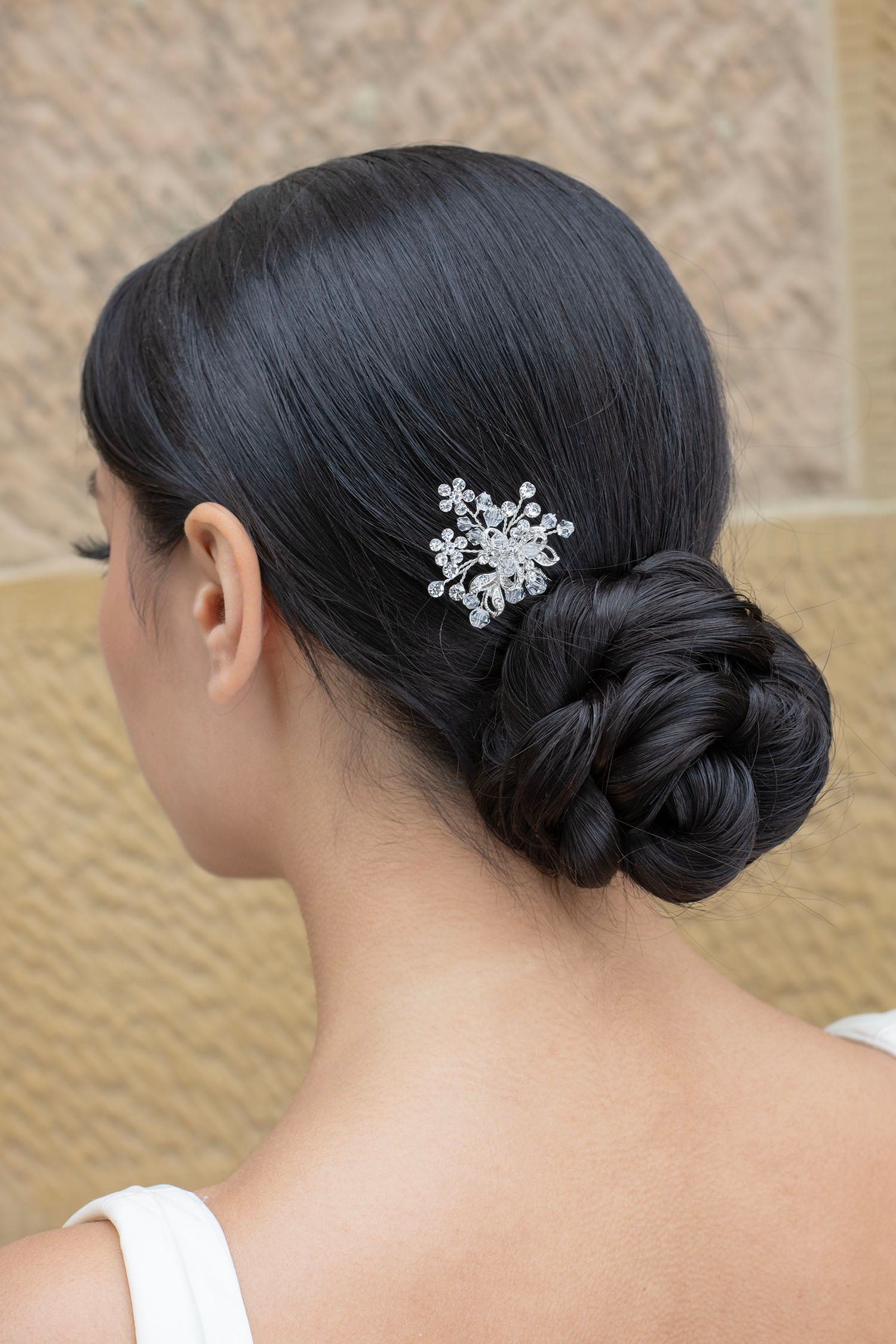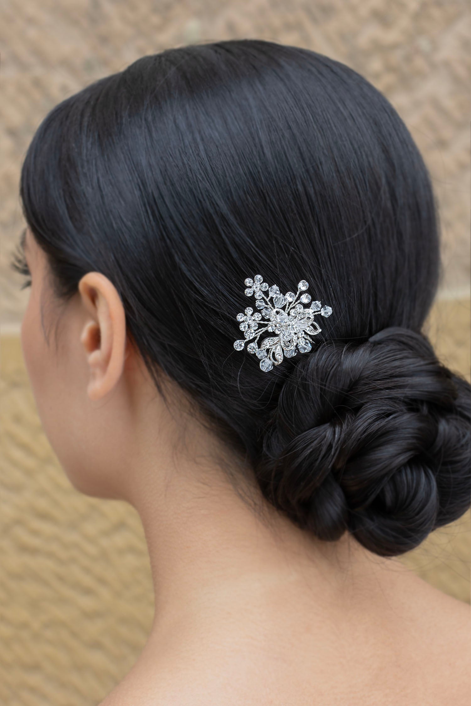 Made of fine Swarovski crystal sprigs and beautiful filigree swirls, the Alice hairpin is an accessory full of floral elegance. Hairpins are a lovely way to enhance all bridal hairstyles, often with three or more being used at once to decorate the hair. Hairpins are great finishing touches perfect for brides, bridesmaids and flower girls alike.