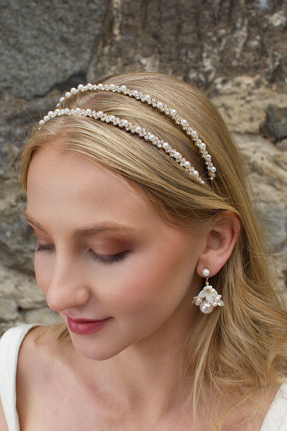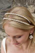 Genevieve is a classic, beautiful two-row bridal headband. The twin rows of clear crystals and pearls are bound onto the light and bendable frame, allowing this piece to mould to the shape of your head for a comfortable fit. Genevieve is modern yet glamorous and will brighten any bridal look with its' simple and pure elegance.