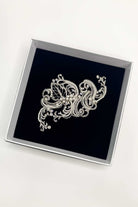 Jade is a beautifully intricate, art-deco style sidepiece. The rhodium metal frame weaves in-and-out in flowing patterns, decorated and encrusted in pearls and crystals featuring both singular clear crystals and pearls. Jade is also fitted with a strong clip at the back for a comfortable and secure fit.
