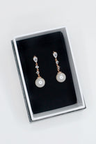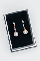Brielle is a stunning long drop style earring. Circular stones fall from a teardrop crystal, featuring the length of the earring finished with a single beautiful pearl. Brielle is also available in Pale Gold and Silver.