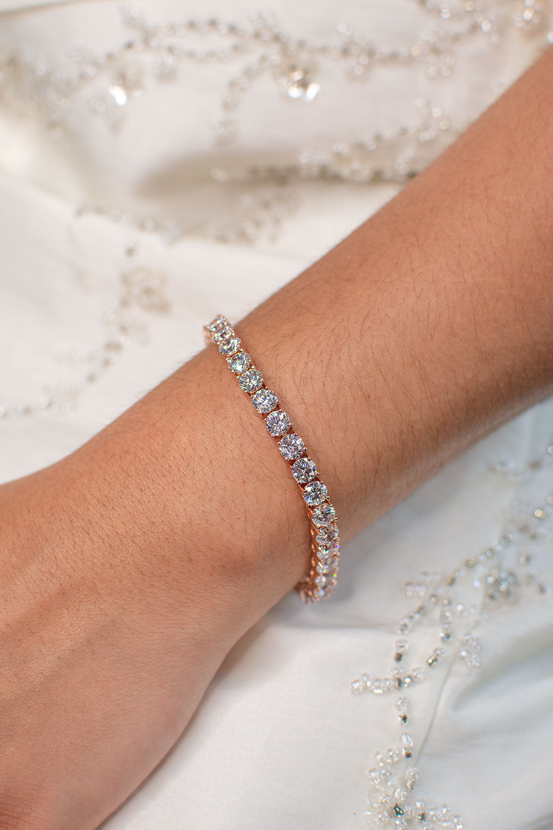 Polo is a beautiful, classic round zirconia stone bracelet with a gleaming, high quality rose gold finish. A classic and trendy bracelet, Polo will compliment all styles and looks, perfect for both weddings and formals alike.