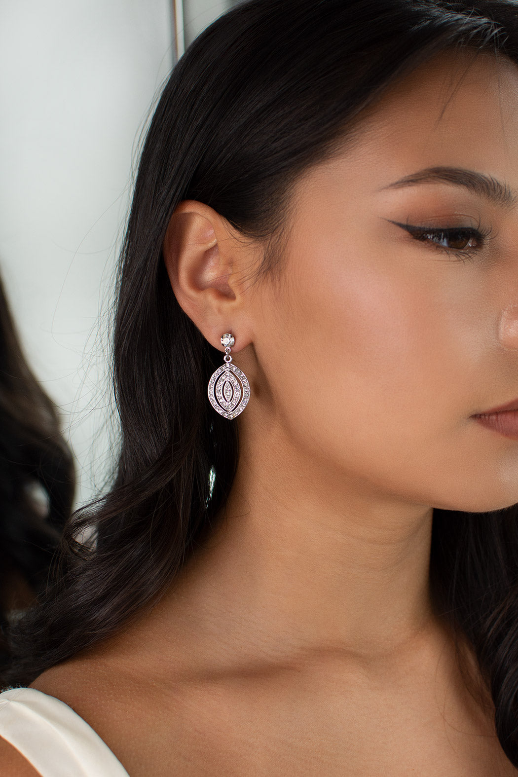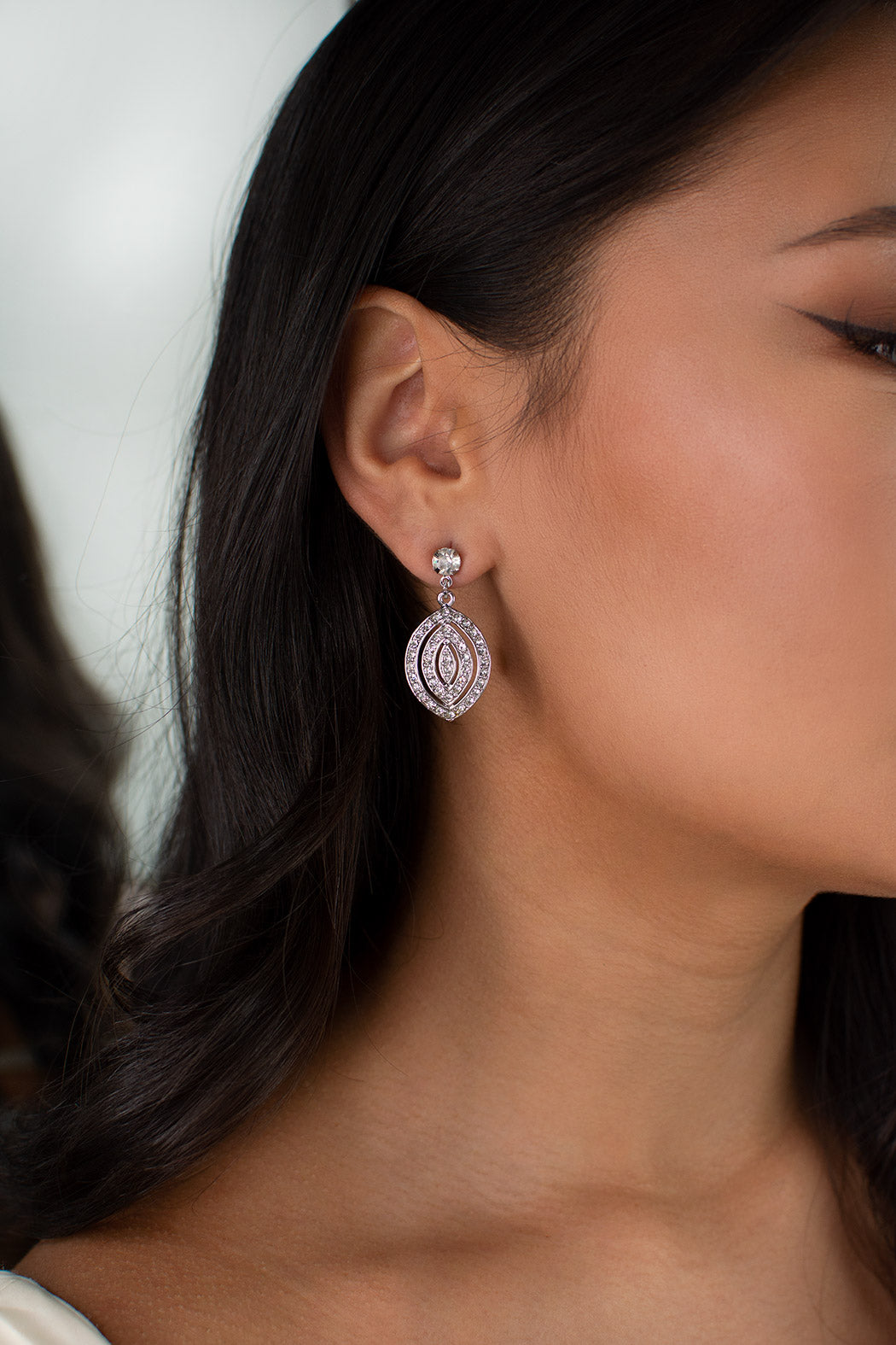 Avery is an Art Deco earring inspired by a 1920's antique French design for a Bride who wants to be refined, understated and elegant. Avery is a triple oval drop design that is completely embellished with tiny sparkling crystals. Avery is a refined post fitting earring that is the epitome of elegance. Avery is a gently curving timeless piece loved by all.