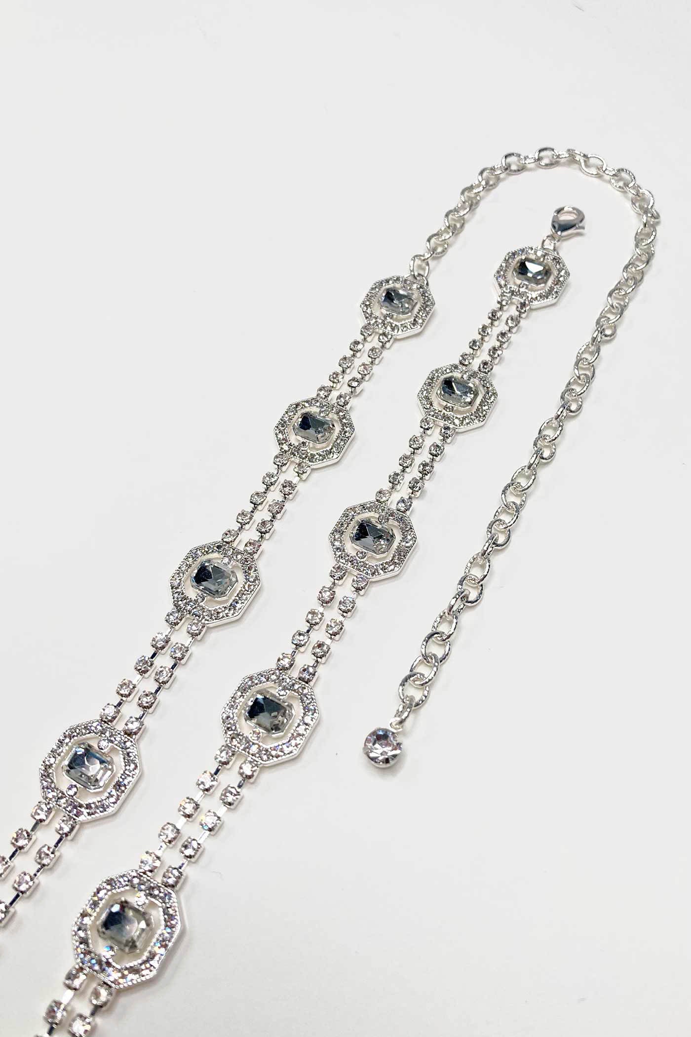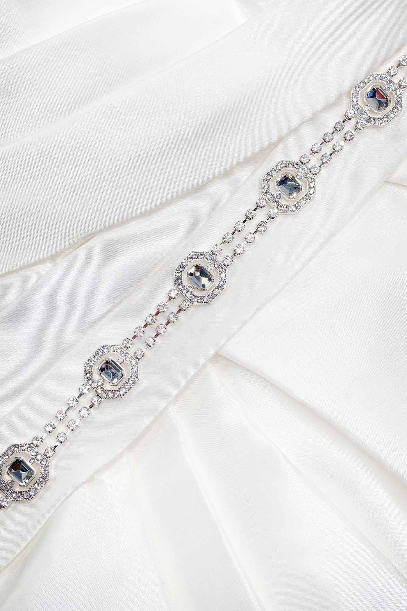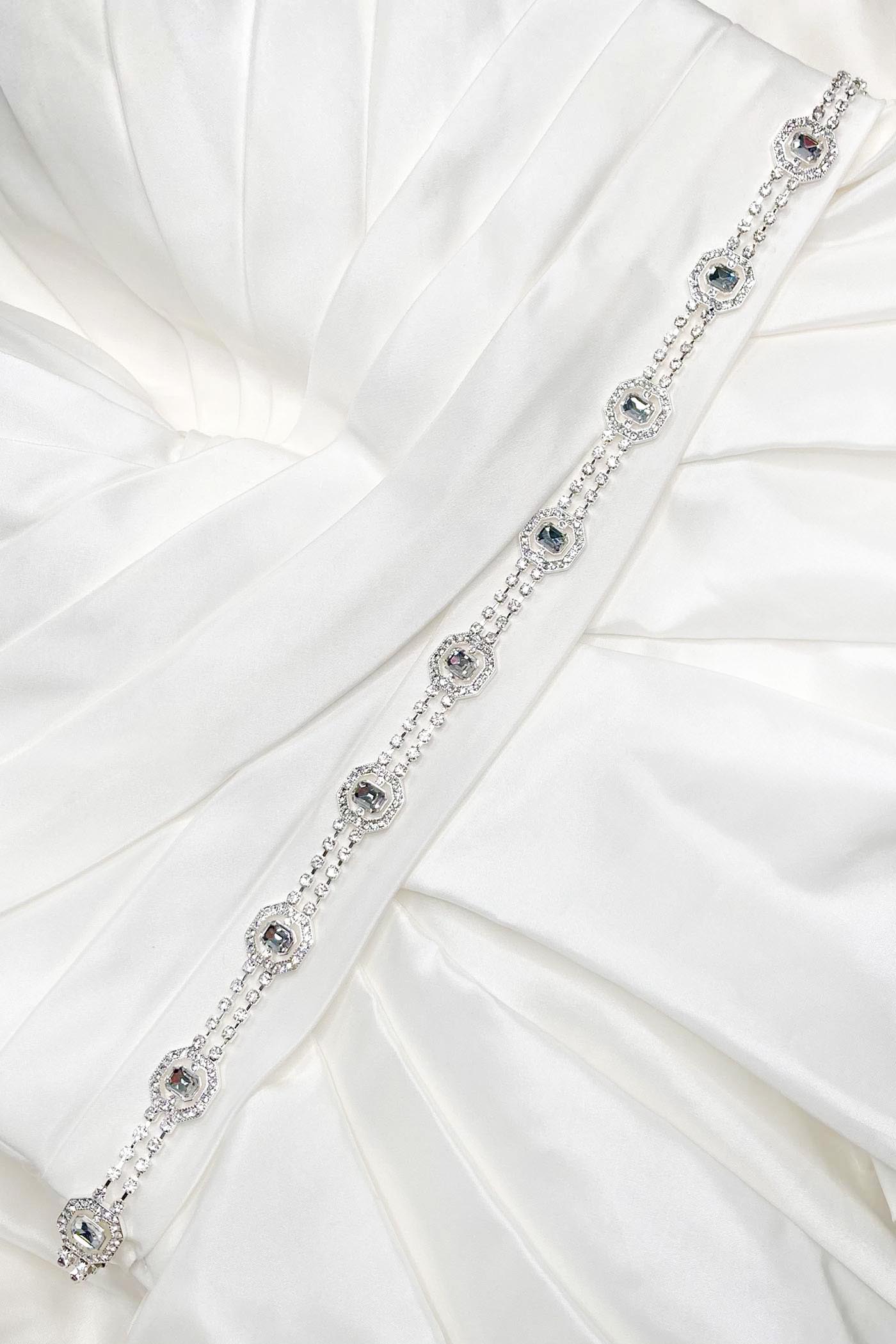 Our London Belt is a gorgeous fine chain belt with beautiful square cut stones, perfect for Brides or Formals. The main part of the belt is about 60 cm long with about 30cm of extension chain so it adjust to most waist sizes. It is fitted with an easy clip fitting at the back.