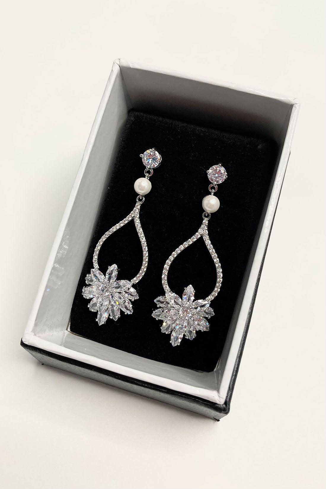 The Addison Earring is a modern take on a classic teardrop shape, with a cluster of navette cut crystals forming a floral inspired motif. The crystal stud followed by a singular pearl flawlessly streams into two seperate canals creating a crystal encrusted frame. The space in which Addison creates is a soft and dazzling experience that gazes through the open drop. Addison is a unique piece that sparkles effortlessly with movement and makes a grand statement with refinement. Addison is approximately 5.5cm long and weighs 6 grams per side.