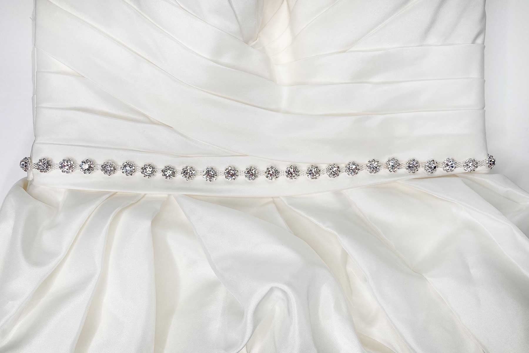 This piece is the perfect narrow chain belt for brides who want to add a little more sparkle to the bridal look.