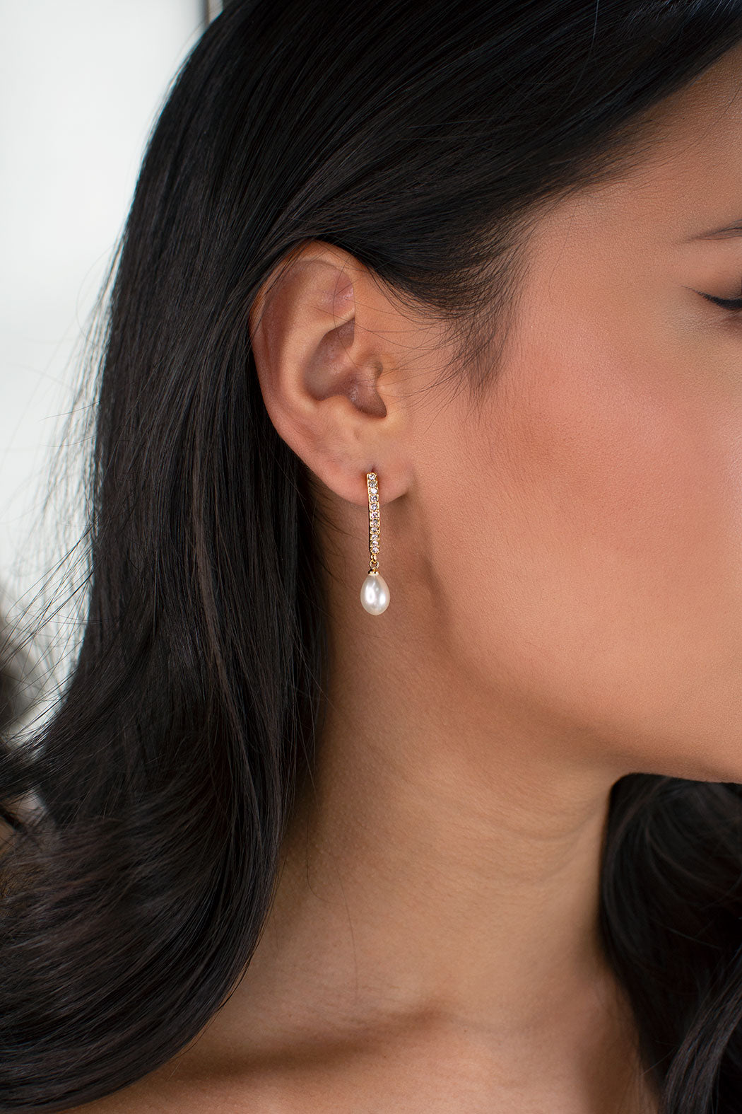 Simple yet beautiful, Audelia is a classic long drop earring that will elevate your look on your special day. The gold plated band is encrusted with striking crystals and adorns a single stunning Swarovski teardrop-shaped pearl. Audelia's timeless elegance is sure to compliment all brides and bridal looks.