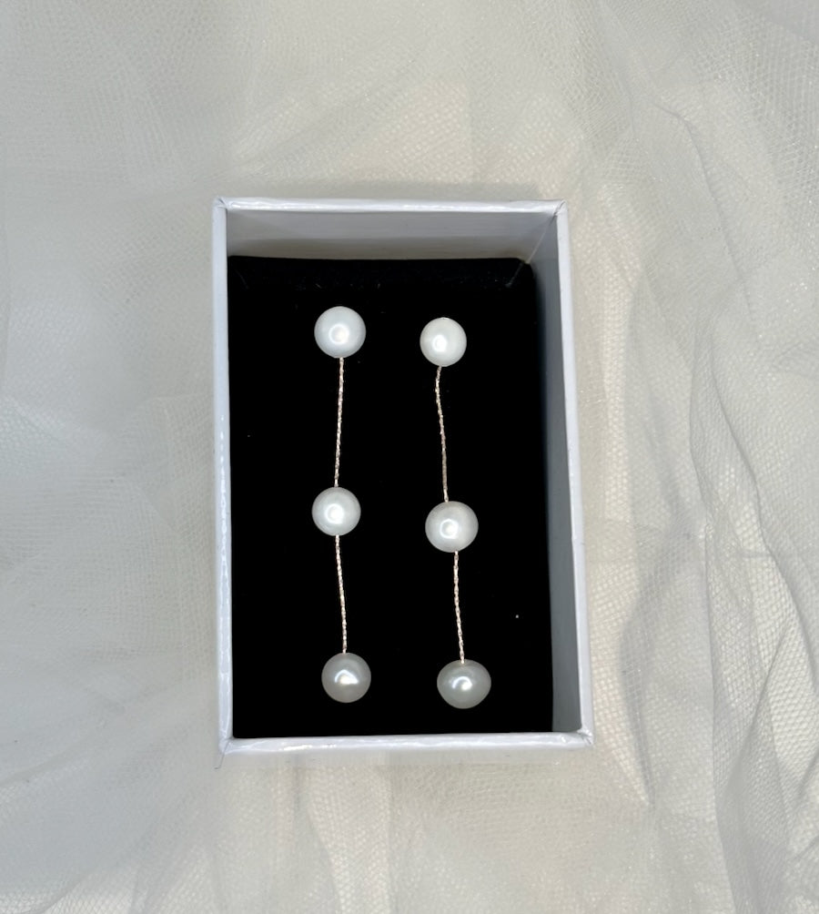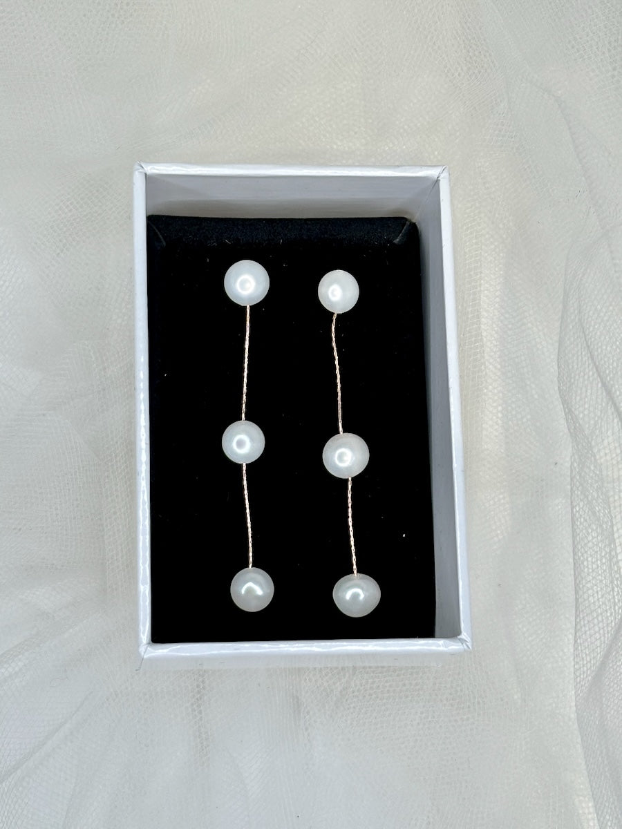 Searching for Rose Gold Bridal Earrings in Pearl ? Capture hearts with our beautiful Bella Earring. Featuring three floating freshwater pearls suspended by a divine sterling silver chain providing the upmost elegance for the Bride or Bridesmaids. Bella's minimalist design is perfect for modern silhouettes and fabrics, an earring to cherish forever.