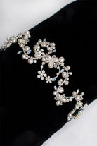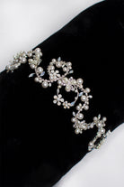 Our Elspeth design is the essence of boho elegance, featuring authentic freshwater pearls and Swarovski white opal stones. Adjusting this headband for individual comfort is simple, with the stunning swirling components wired for easy reshaping. Elspeth is sure to be a unique complement to your bridal look. Elspeth is an unusual charming wider headband with real freshwater peals and a pearlescent white finish over the leaves. Swarovski white opal stones are a feature of this design adding an element of luminosity and elegance.