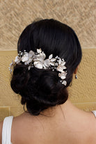 It’s all about Eve in the is gorgeous garden-tribute hair comb design. Angelically constructed, this is an exquisite statement piece. Featuring delicate floral details ornamented with crystal and pearl embellishment creating an ethereally classic look, you won’t want to take this beauty off on your wedding day. Light as a petal and easily adjusted, the Eve hair comb will be simple to secure on your special day.