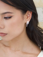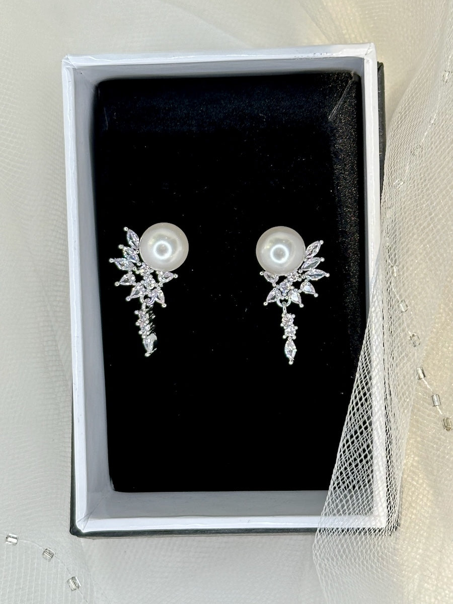 Fit for a Bride this earring with a lovely pearl sitting in a cushion of tiny crystals will make your dream wedding day come true. Evelyn is made for a Bride who wants that perfect length earring to set off her Bridal ensemble. A truly lovely earring to be loved by so many Brides. Choose Evelyn and be sure she is made to make you beautiful.