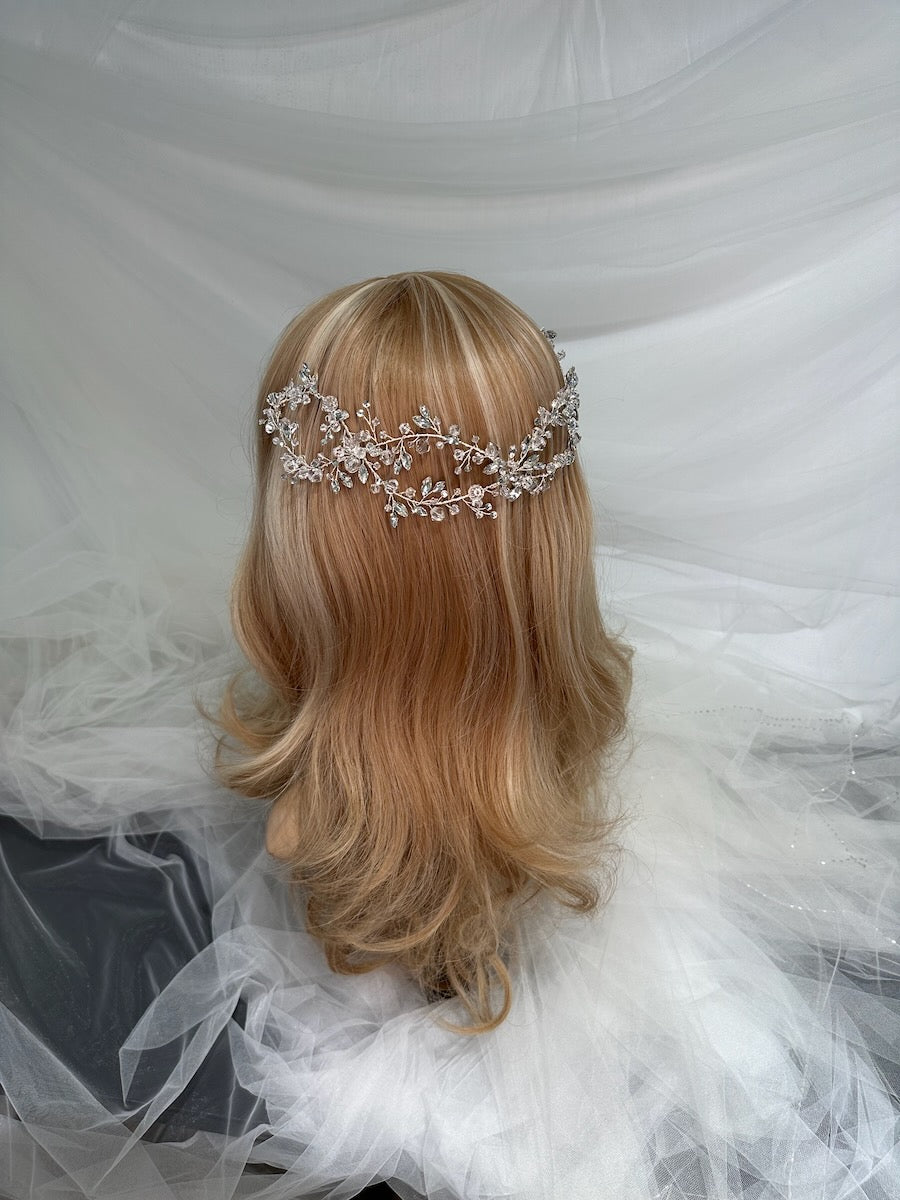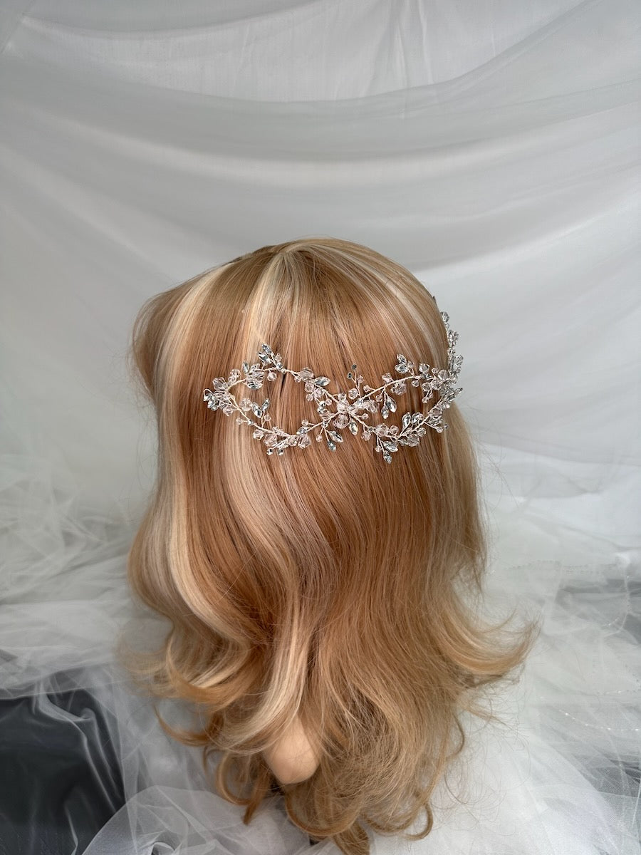 Gia Twin row is a beautiful wider crystal bridal vine. Crystal beads and stones of varying sizes and shapes glisten and glint as they adorn Gia's super soft flexible metal wire base, making it easy for you to wind Gia around up-do's and intertwine in hairstyles. The possibilities are endless with Gia, and is sure to add a little sparkle and beauty to your bridal ensemble.