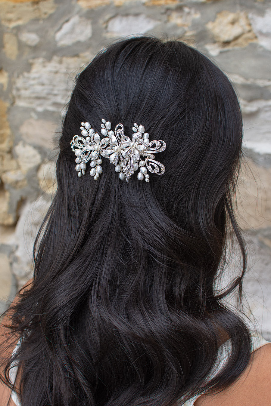 The Jasmine Sidepiece matches our Jasmine Crown in Silver