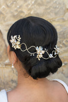 Peoni is a superb delicate very flexible hair vine available in a pearlescent Pale Gold. The delicate nature of Peoni connects to nature, elevating even the simplest wedding look to one that is sophisticated and stylish. A much loved and admired vine, Peoni and can be worn at the back of the head or across the forehead for a bohemian look.