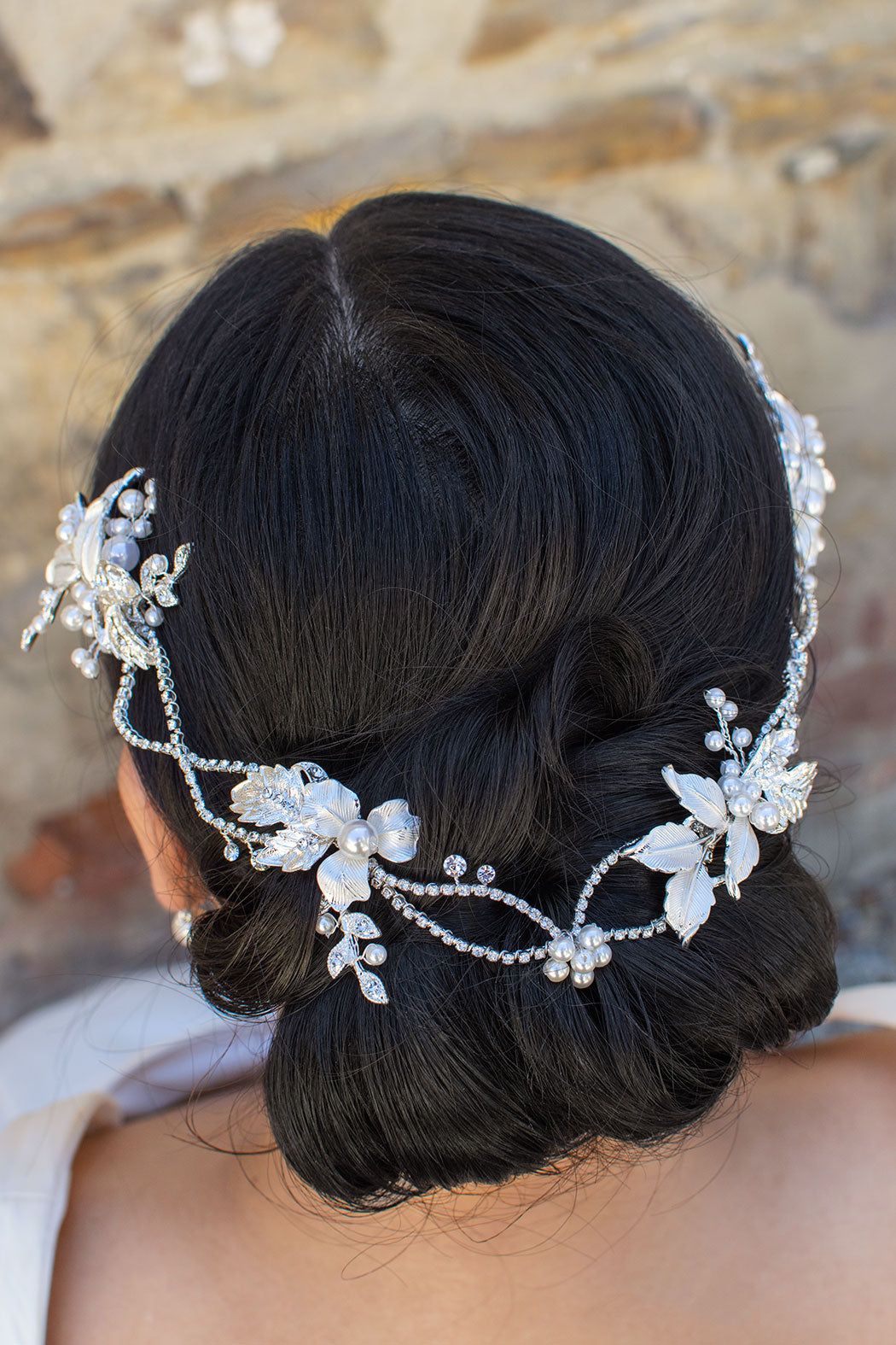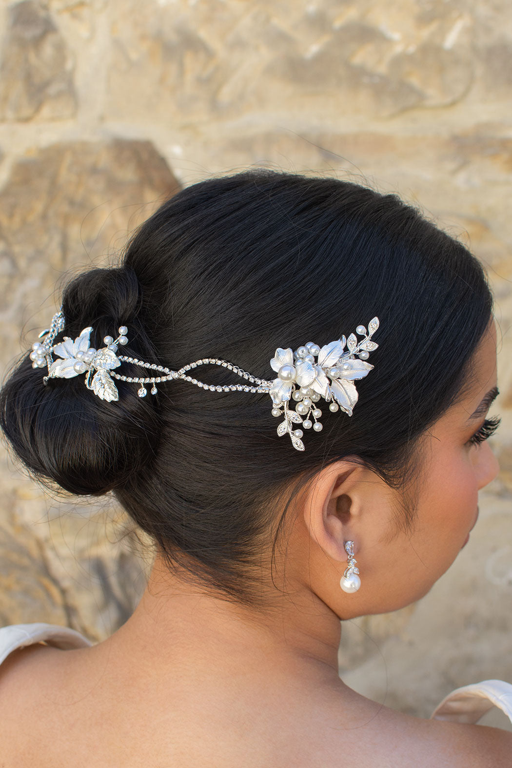 Our Peoni bridal vine is the essence of charm and elegance. This stunning design features motifs of polished flowers and leaves subtly embellished with pearls and crystal beads. Always picture perfect, Peoni will have you looking florally stunning as you make your way down the aisle.