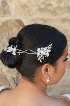 Peoni is a superb delicate very flexible hair vine available in a pearlescent Pale Gold and Bright Silver. The delicate nature of Peoni connects to nature, elevating even the simplest wedding look to one that is sophisticated and stylish. A much loved and admired vine, Peoni and can be worn at the back of the head or across the forehead for a bohemian look.