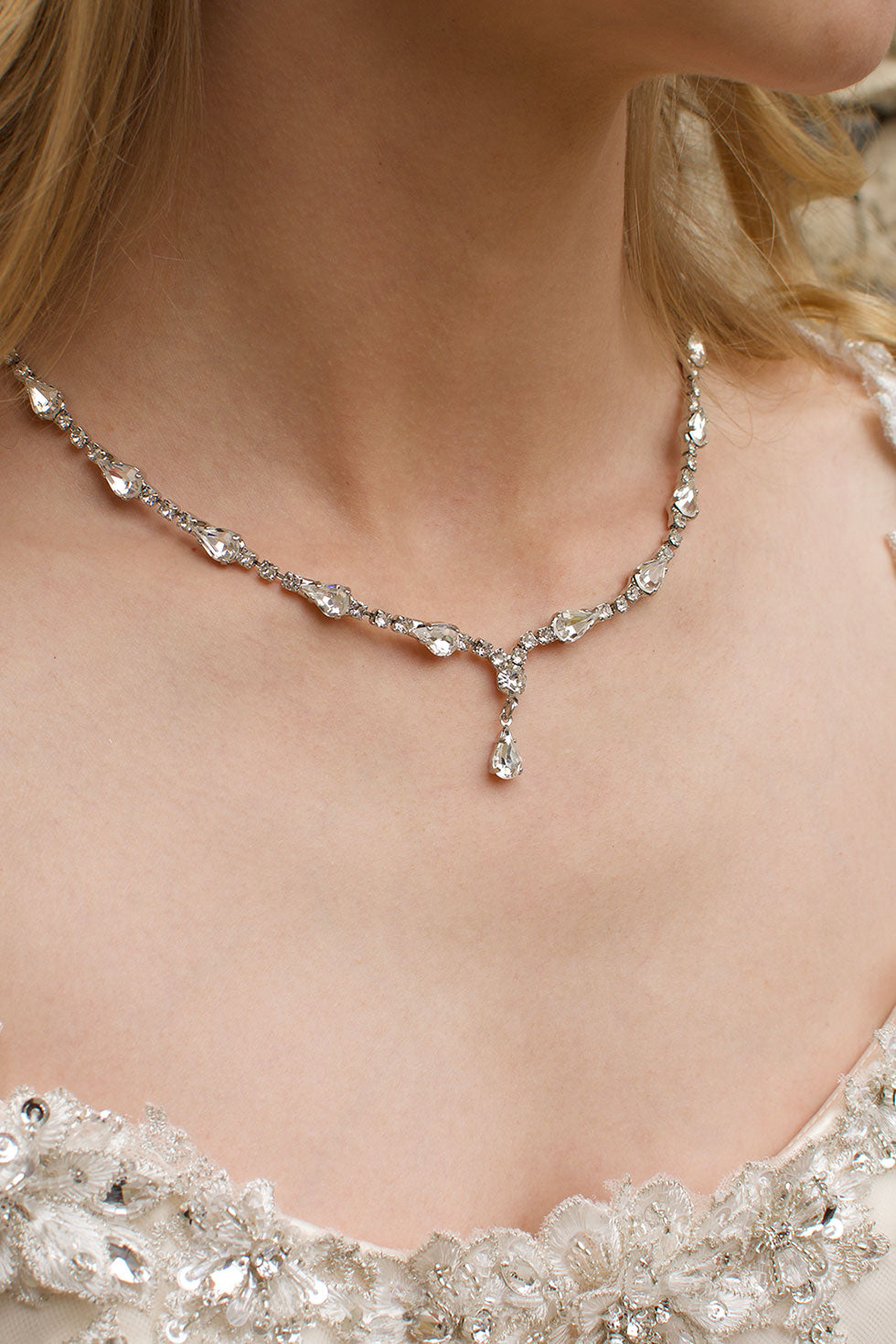 Verity is a classic teardrop necklace made of small teardrop shaped crystals (swarovski crystals) with dainty chain links in between. The flattering pointed teardrop centre comfortably sits along the chest beautifully. Verity is all about having a most elegant look thats understated and very refined. Verity is about 44cm (17 inches) long with an extension chain of about 4cm (1.5 inches). If you need a longer extension chain adding we will do this free of charge. Just message us when you order. A longer extension chain allows you to let the necklace sit a little lower if you prefer that look.