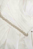 Our Victoria All Pearl Belt is a narrow style belt with a gleaming centre pearl surrounded by a ring of pearls that make this belt approximately 1.5cm wide. The pearl motif extends for 60cm approximately and is backed by a 3 metre long ribbon, tipped with diamanté stones that finish off the ribbon beautifully. The Victoria All Pearl Belt is available in Ivory satin ribbon. We can also do white satin ribbon at no extra cost. Please add a note when ordering if you would like the white.